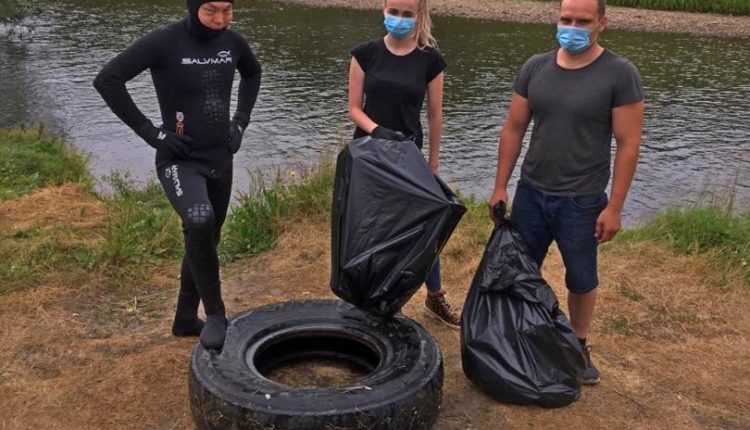 Активисты подняли со дна реки множество пластика, стекла и даже автомобильную шину.