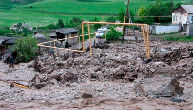 С гор сошел селевый поток, который обрушил опоры газопровода и оставил без голубого топлива четыре поселка, в которых живут более четырех с половиной тысяч человек. Река вышла из берегов, потоком воды в нее унесло машину с двумя людьми, которых пока не удалось найти.