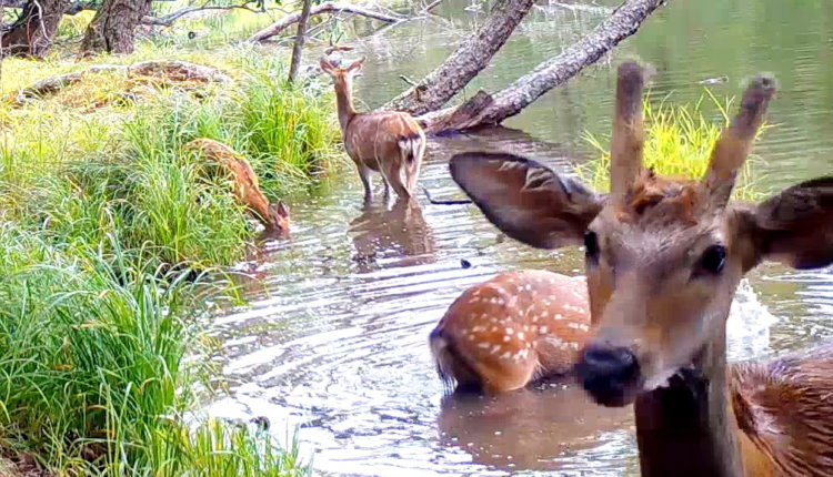 В Приморском крае в национальном парке «Земля леопарда» научные сотрудники получили уникальные в своем роде видеоматериалы. Для того, чтобы находить себе вкусную пресноводную растительность пятнистые олени погружаются под воду. Что характерно, такой способ добычи кормов для этого вида оленей ранее не был описан наукой.