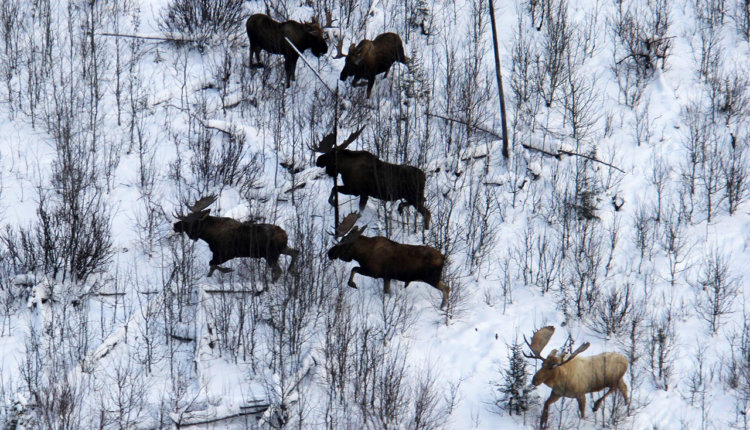Всего на Аляске насчитывается от 175 000 до 200 000 лосей. Животные там ценятся за мясо и ежегодно охотники добывают не менее 7000 особей.