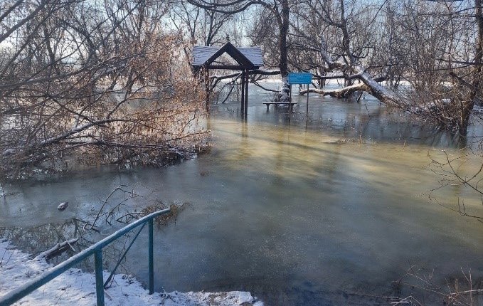Также во время инспектирования территории в районе Дивногорья был проведён мониторинг зимнего паводка. Тёплая погода, которая установилась в Воронежской области, в сочетании с обильными осадками, привела к переувлажнению почвы и подъёмы грунтовых вод вблизи заповедника и в Дивногорском источнике. Поднявшиеся воды, с наступлением морозов, покрылись льдом, что чревато гибелью деревьев. С целью недопущения такого развития событий мониторинг будет продолжаться.