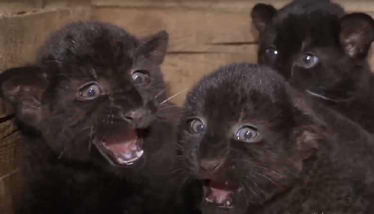 Сотрудники Абаканского зоопарка сообщили в официальной группе во «ВКонтакте» о том, что у редких черных пантер, Багиры и Блэйда, родились трое котят.