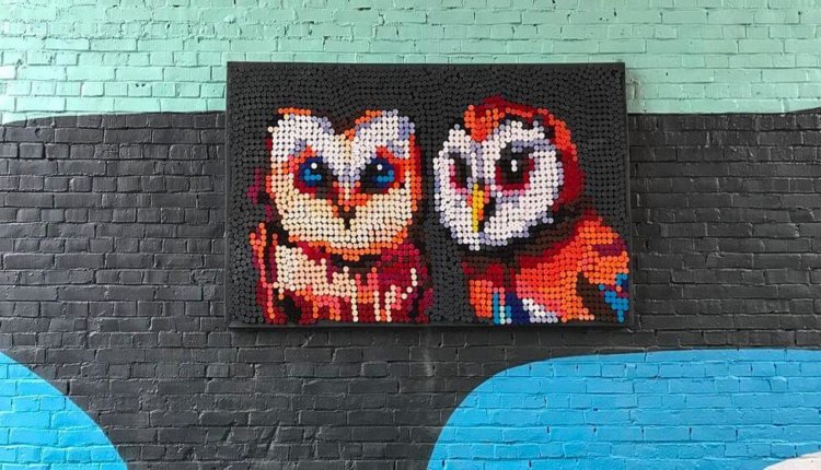 В Норильске из 4000 пластиковых крышек сделали панно с совами