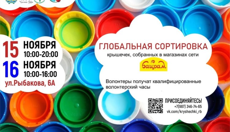 — Масштабная сортировка проводится для того, чтобы подготовить собранные крышечки в магазинах сети #Байрам по РБ к транспортировке на переработку. В этот раз сортировка пройдет на территории Республиканского детского эколого-биологического центра Республики Башкортостан. Адрес: улица Рыбакова, 6А. С 10:00 до 18:00 каждый желающий может принести свои крышечки и остаться помочь в сортировке пластиковых крышечек, — говорится в сообщении Минприроды Башкирии.