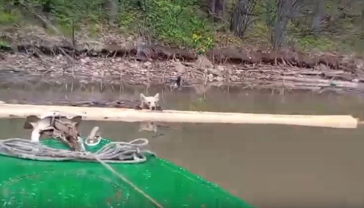 Мужчина подплыл к медвежонку и вытолкал его к берегу. Малыш не испугался и не стал сопротивляться. Уже вскоре он оказался на суше, где его ждала медведица.