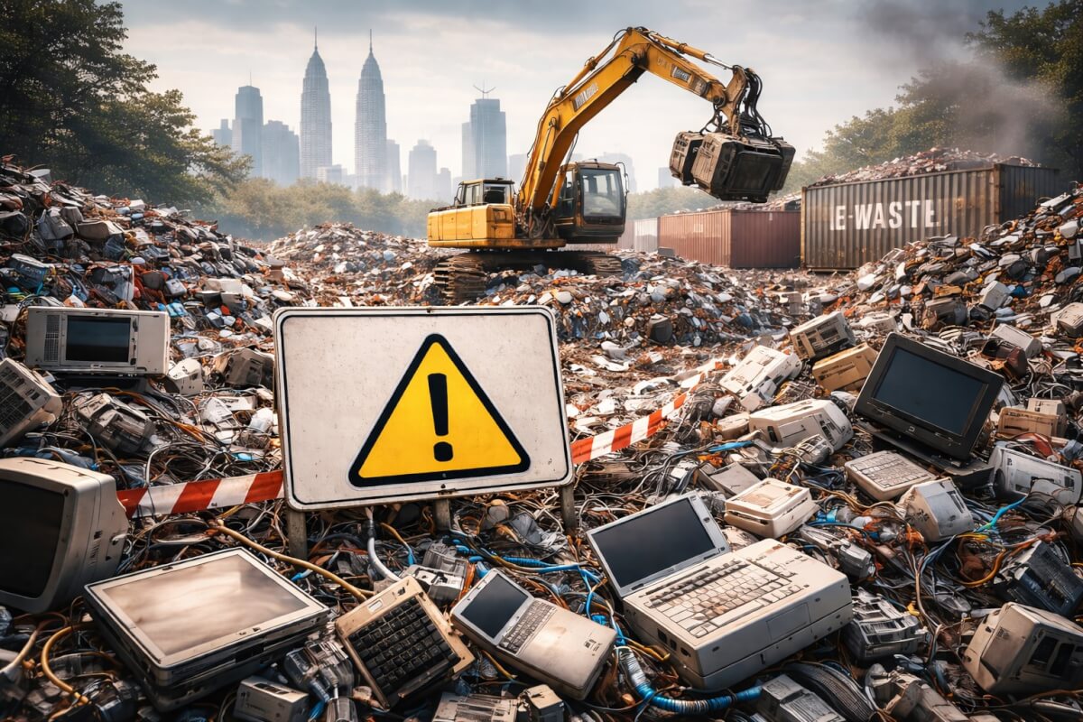 Электронные отходы содержат опасные вещества — включая свинец, ртуть, кадмий и бромсодержащие соединения. При ненадлежащем обращении они способны загрязнять почвы, водоёмы и атмосферу, а также представлять угрозу для здоровья населения. В последние годы в Малайзии неоднократно выявлялись случаи незаконного ввоза и нелегальной переработки e-waste, в том числе на несанкционированных объектах.