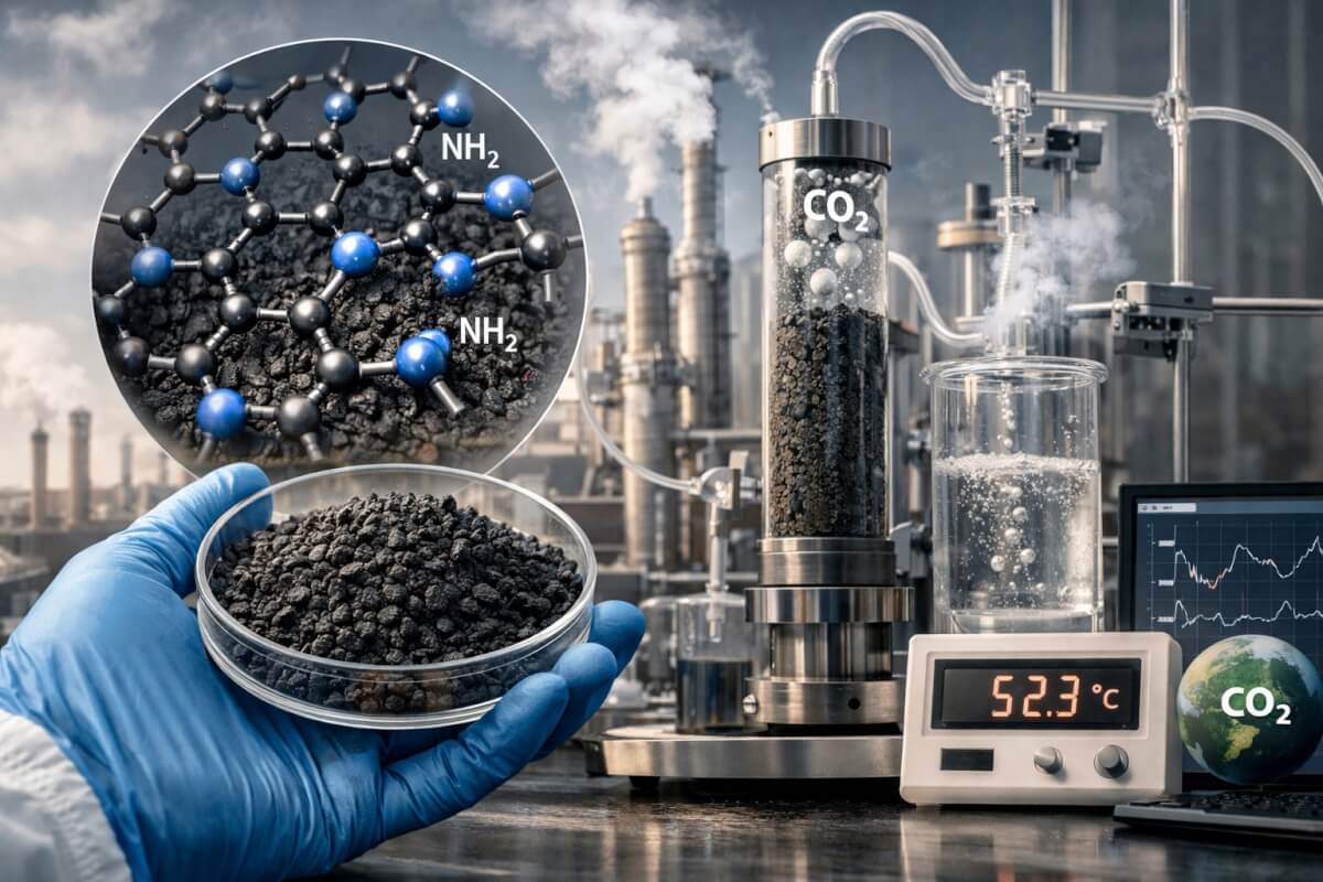 Как отмечают авторы, принципиальное значение имеет не только способность материала поглощать CO₂, но и условия его последующего высвобождения. В ходе испытаний было установлено, что часть разработанных материалов позволяет десорбировать углекислый газ при температурах ниже 60°C. Это существенно ниже параметров, характерных для традиционных технологий, таких как водная аминная очистка, где требуется нагрев свыше 100°C.