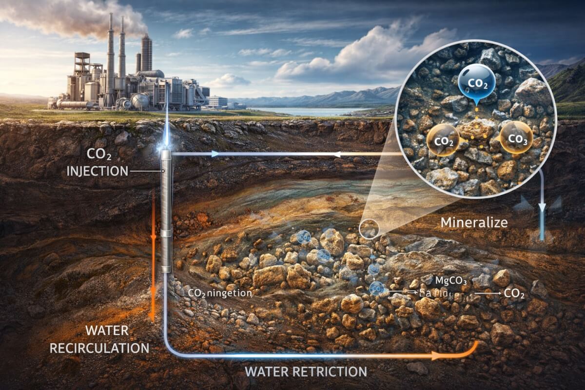 Результаты пилотного проекта опубликованы в Nature. Разработка основана на процессе минерализации CO₂ в породах земной коры с использованием замкнутого цикла воды.