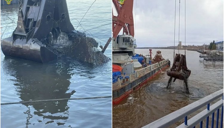 Со дна Волги в Кинешме подняли затонувший дебаркадер